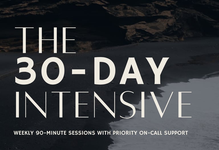 This retainer-based packaged offers weekly 90-minute sessions and unparalleled, priority access during the 30-Days, offering ongoing support and reliant accountability in between sessions.